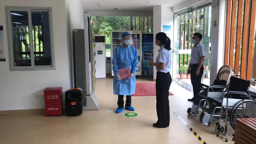 当天下午演练场景为在游客中心,发现一名游客有中风险地区旅居史,持绿码,居家隔离14天后,到红树林城市湿地公园游玩,出现体温异常(超过38.5℃)伴有咳嗽等症状。景区工作人员及时将情况汇报社区三人小组及景区上级部门区旅游局,并启动景区防疫应急预案。